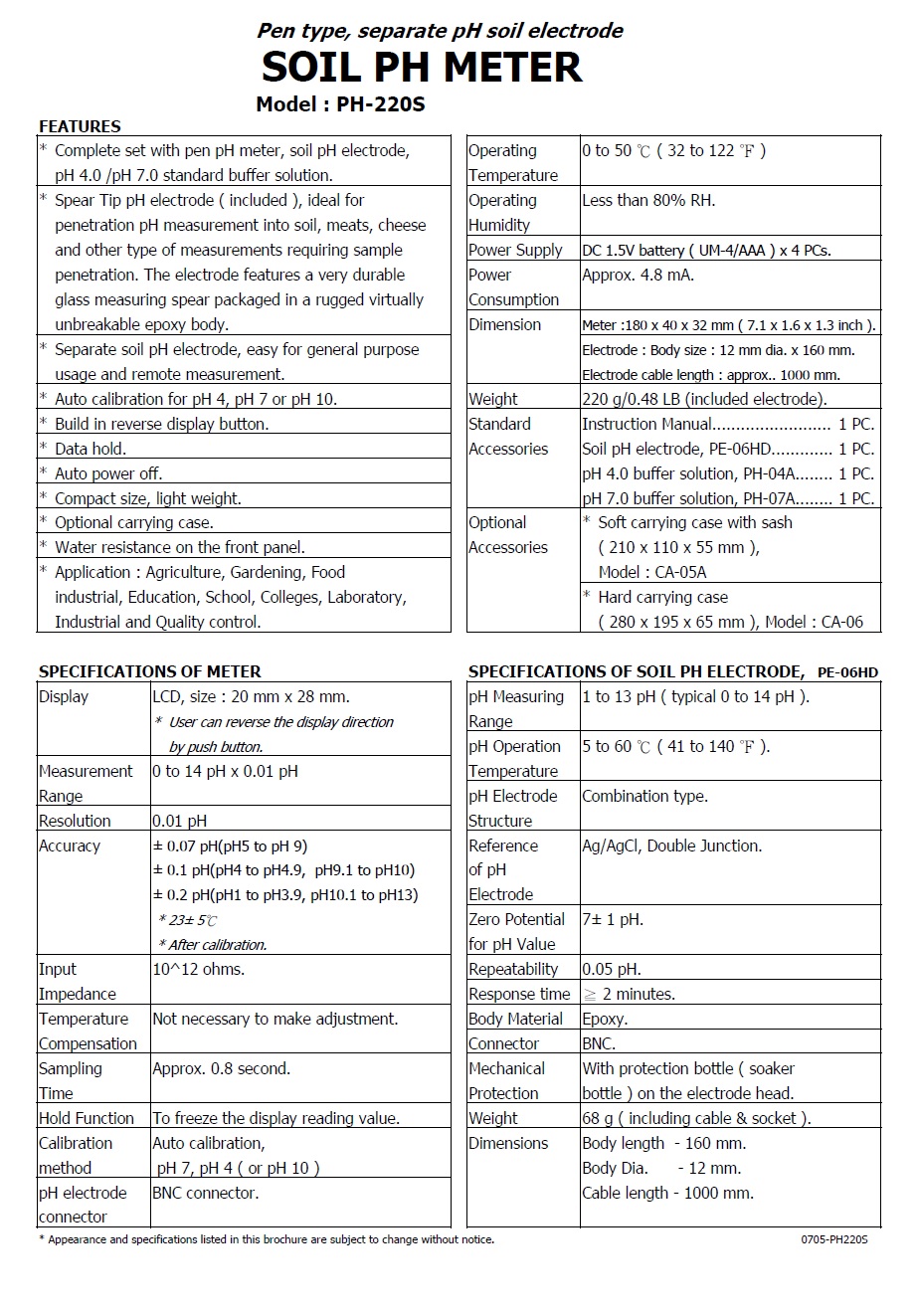 SOIL PH METER - PH-220S  土壤/乳酪/肉類酸鹼度計