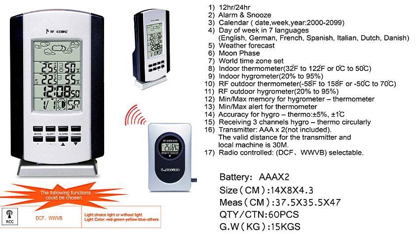 Product Name : Wireless weather station clock (RF 433MHz)