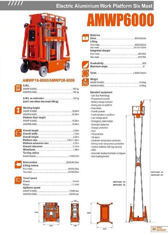 Electric Aluminium Work Platform  Six Mast