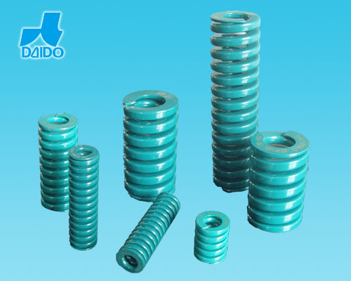 大同模具弹簧选用高应力,高速振幅,耐热性优秀的SWOSC-V同等材。它具有安装体积小、弹性好、钢度大、精密度高、制作材料呈矩形及表面分色喷涂、外表美观等特点。日本大同株式会社及上海太同弹簧有限公司生产的标准化模具弹簧目前产品分为较小荷重、轻荷重、中荷重、重荷重、超重荷重等几种。