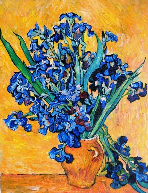 Vase with Irises against a Yellow background.1890