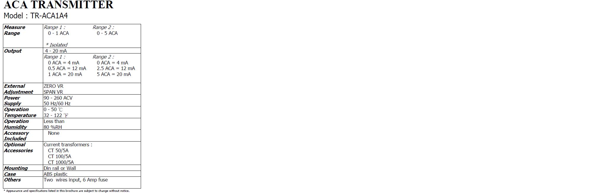 Product Name : | ACA TRANSMITTER |