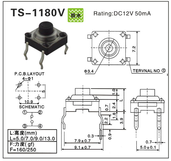 TACT SWITCH WATER PROOF (輕觸防水開關)