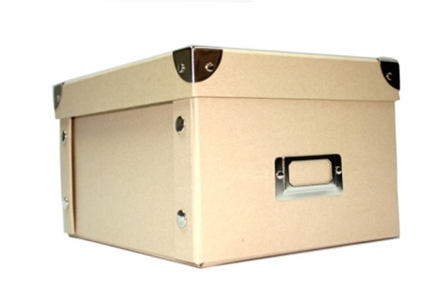 Foldable CD box, kraft paper, with 4 metal corners and name card holder