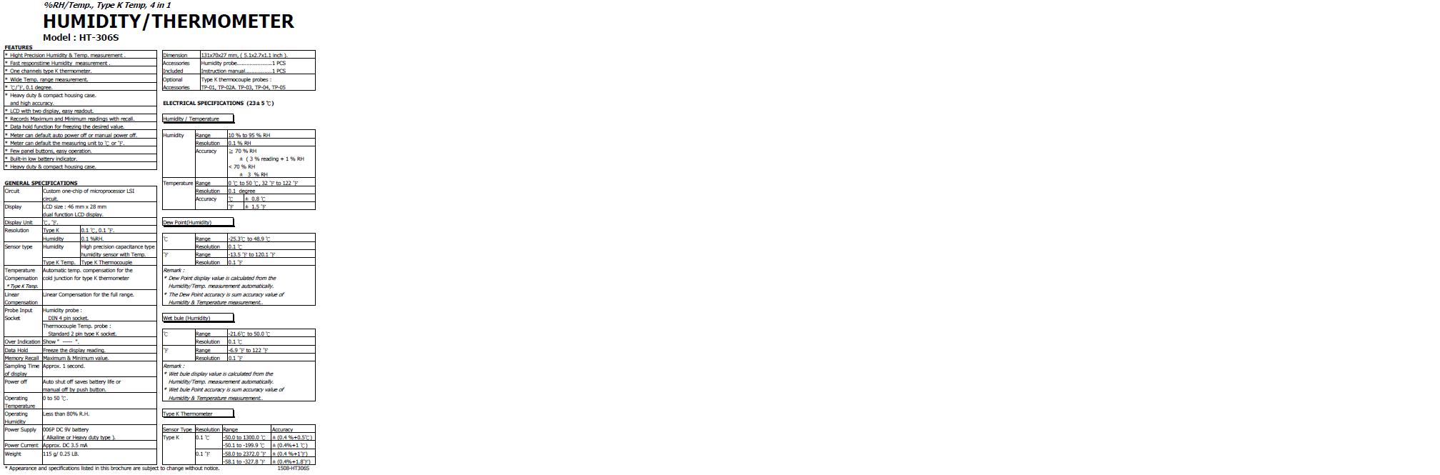 Product Name : | %RH/Temp., Type K Temp, 4 in 1 HUMIDITY/THERMOMETER |