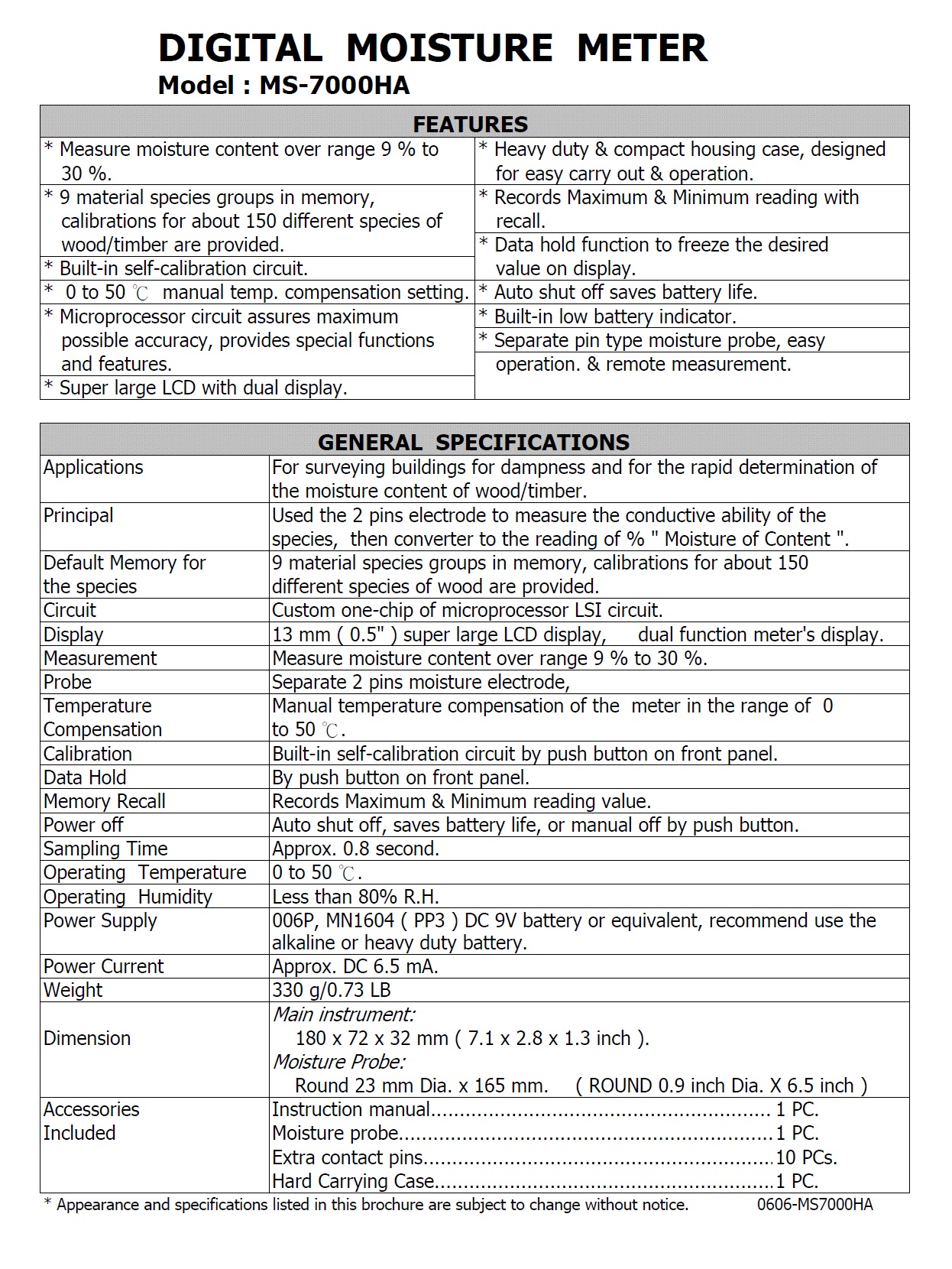 Product Name : 木材水分計 MOISTURE METER Model : MS-7000HA