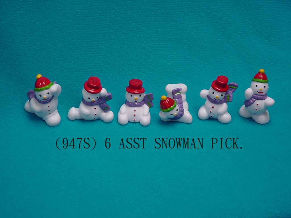 (6 asst snowman pick) X'mas cake decoration