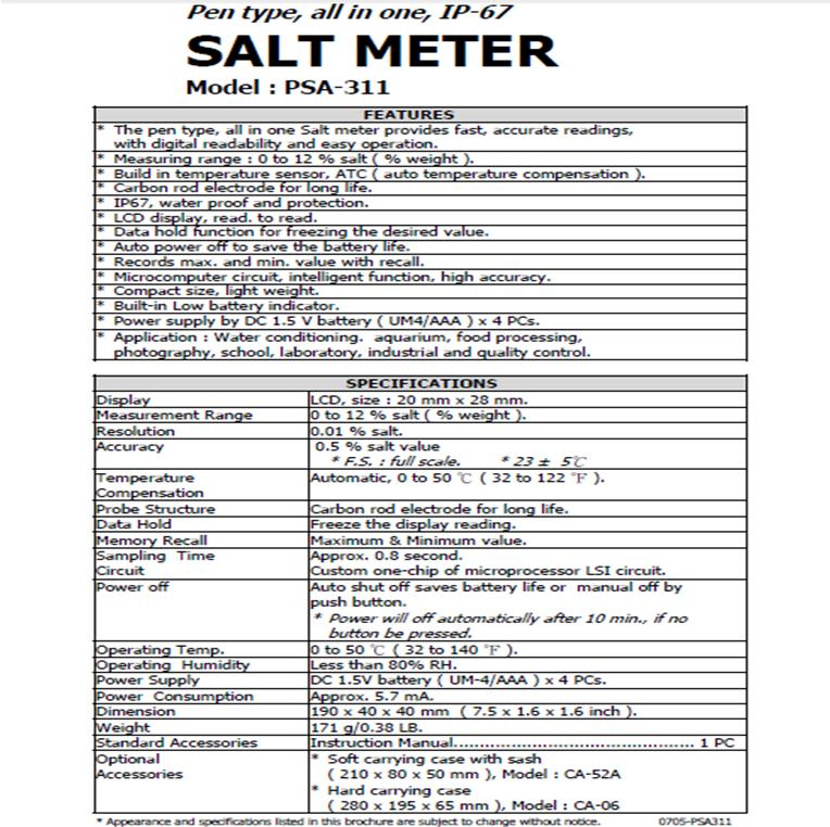 Product Name : Pen type, all in one, IP-67 SALT METER