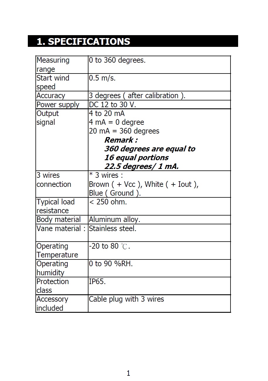 Product Name : | 4 to 20 mA WIND DIRECTION TRANSMITTER Model : TR-AD3W [4-20毫安培風向傳送器] |