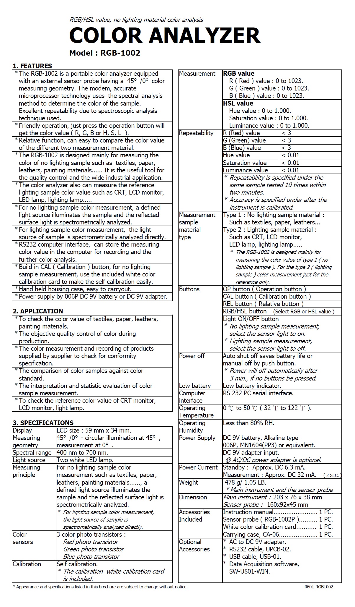 Product Name : COLOR ANALYZER - RGB-1002 色彩分析儀